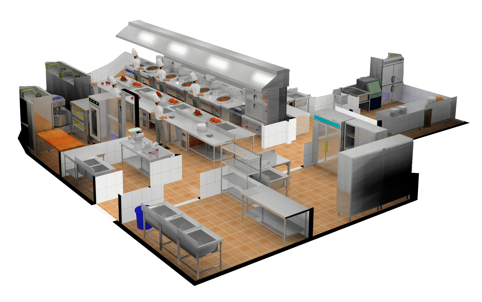 首先,五星级酒店厨房设计必须注意以下几个要点。