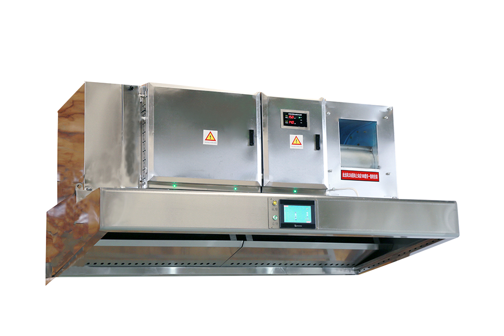优佰特一体机融烟罩、风机、净化器为一体的油烟净化设备,其油烟净化采用六级净化。一级冷凝碰撞原理.二级蜂窝吸附过滤网.三级托油盘高速运转甩油.四级高分子稀有金属过滤.五级高压静电吸附净化原理.六级UV光解除味原理。最终分解出空气中的油烟,排出新鲜空气。