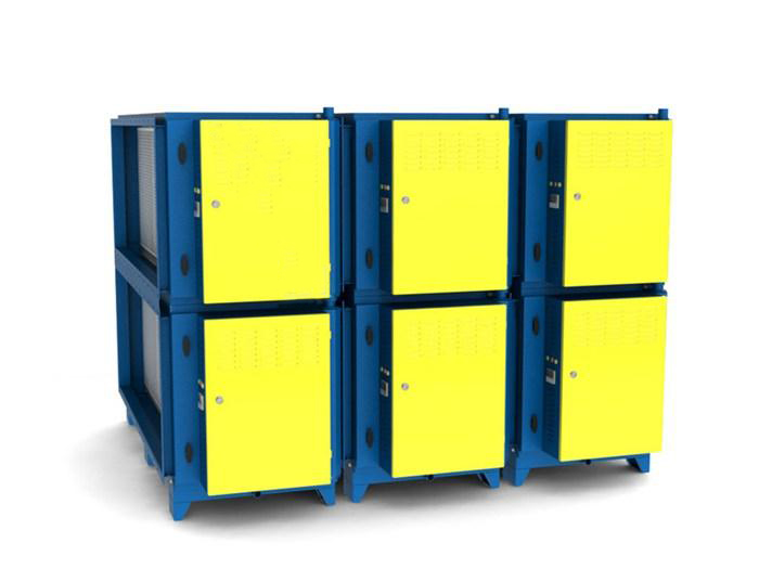 1、厨房油烟由离心式风机吸入放电油烟净化器,在这其中一部分非常大的油可吸入颗粒物、油迹细颗粒物在均流板上由于工业设备碰撞、阻留而被捕集。当气流进到髙压静电场时,在髙压电场的作用下,厨房厨房油烟乙炔气体盐类水解,有机废气浓差极化。