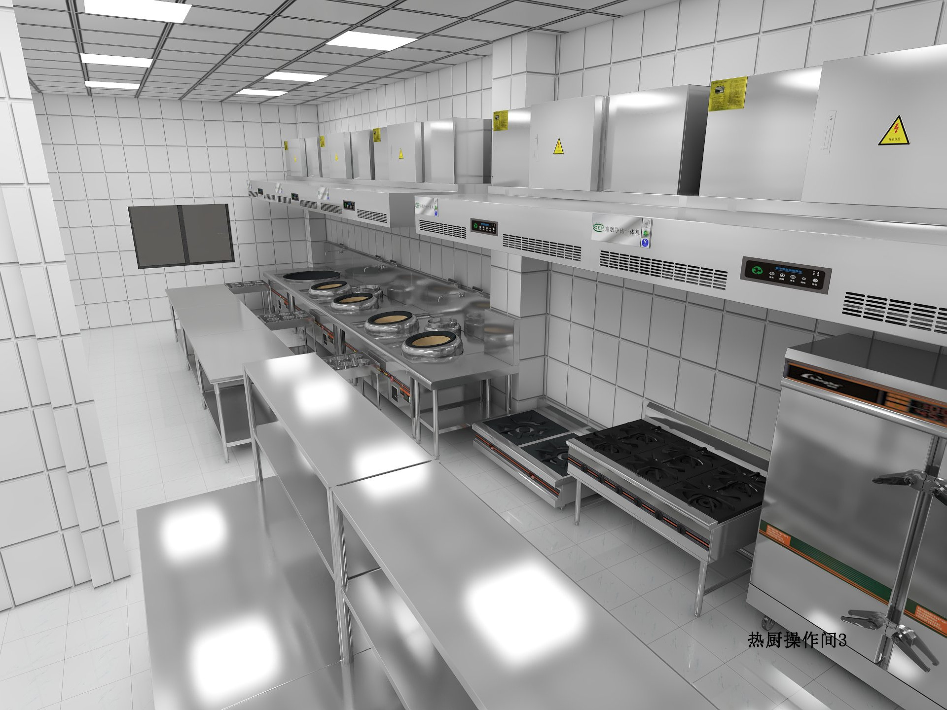 工艺需要专用设备,还需要满足配套设备的功能要求。在大多数情况下,运营商只会提出炉具、蒸汽柜等所需的主要设备。还有一些必要的通用设备,如水池、冰柜、调料台、工作台等。这就要求设计人员结合实际情况,将所需的厨房设备设计到位,并向操作人员说明。