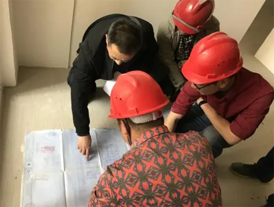 2.现场测量校对图纸,记录沟渠、梁、柱、突出物、高度等变化部位的具体尺寸。