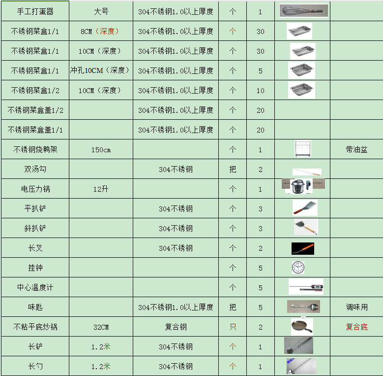 以上这些就是我们总结的关于厨房设备配置清单应该包含哪些信息的相关知识,希望对还在寻找厨房设备配置清单的制作方法的朋友有所帮助。