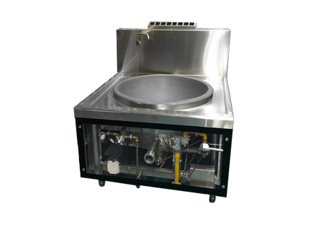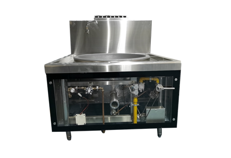 6、双连体比例阀,带稳压阀,风气联动,全铜管气制链接,配特厚铁锅,铜管上水,十字水阀。全钢把手。