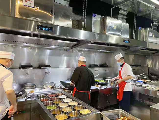 使用开放式厨房厨具一定要加强通风排烟,否则飘到餐厅的油烟会影响就餐环境和食客的心情。