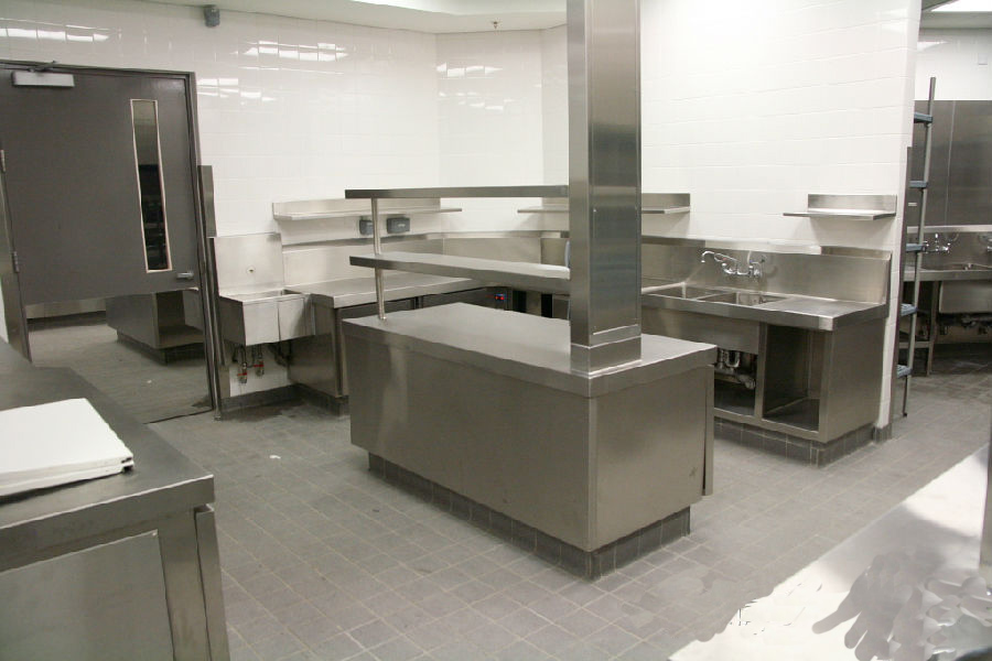 依然是一流的现场无缝焊接工艺,台面非常平整,对土建(地台施工),现场焊接工艺,调理台的制造工艺要求非常高。工作台的背板用大弧度L型设计,避免藏污纳垢,容易清洗。