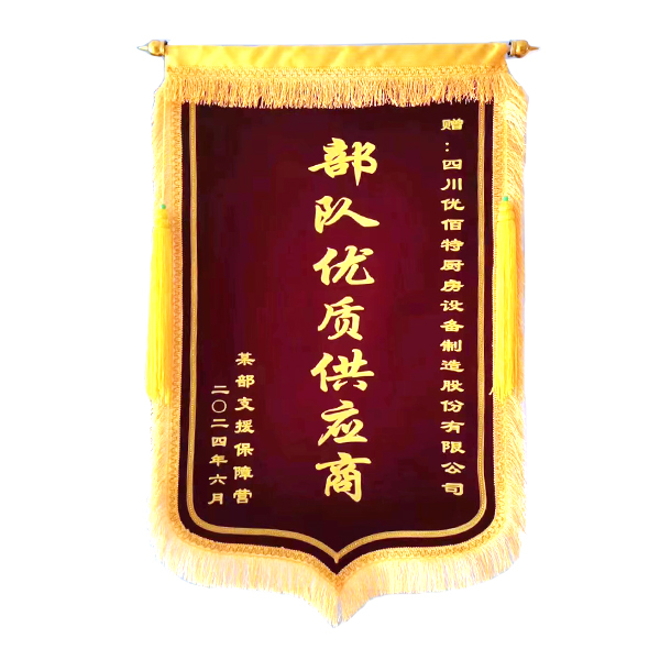 热烈祝贺优佰特获赠“部队优质供应商”锦旗一面。我们公司在6月份的项目中,有一个成都某部队的食堂厨房。由于是给部队建设厨房,而且部队的作风都是雷厉风行,所有的设备都必须在规定的时间内生产安装完成。为了能够满足部队的需要,我公司在接到订单后就马不停蹄的生产,快速组织生产人员加班加点的赶进度,把整个厨房设备都快速的保质保量的生产安装完毕。我们的出色表现,解决了部队官兵的用餐问题,获得了部队领导的高度好评和认可,为了感谢我们配合工作,特送“部队优质供应商”锦旗一面,以此嘉奖我们做出的贡献。