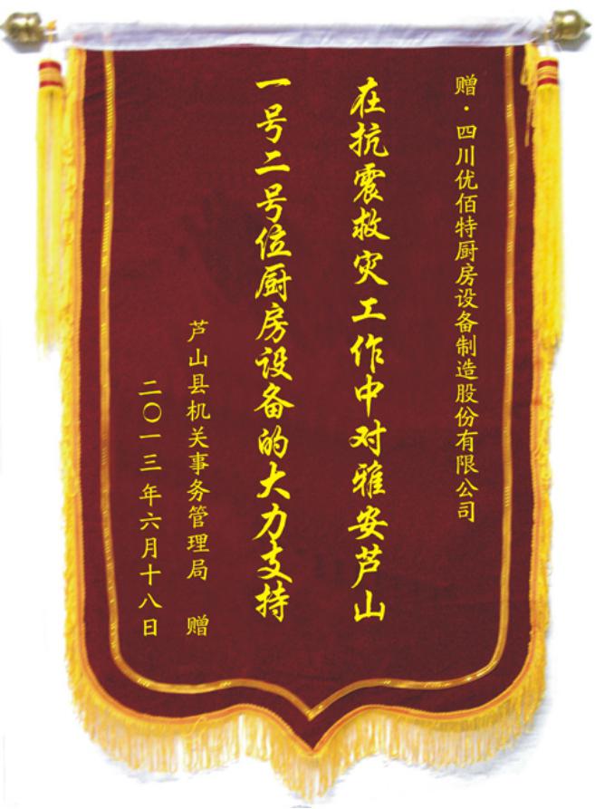 我公司2013年雅安芦山地震中援建厨房设备,获芦山县赠锦旗
